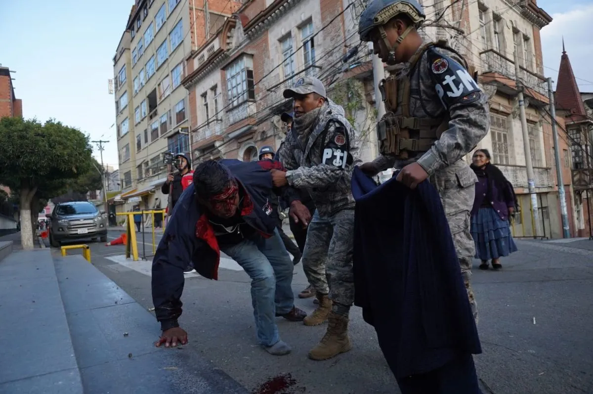 Una persona que resultó herida durante el enfrentamiento entre seguidores de Evo Morales y Luis Arce . Foto Javier Mamani @APGNoticiasBoCaption