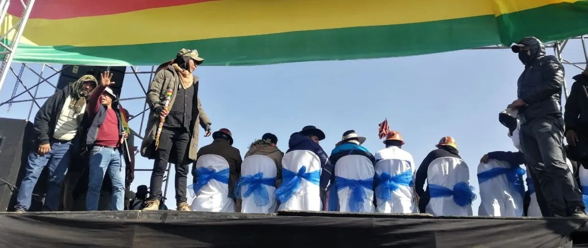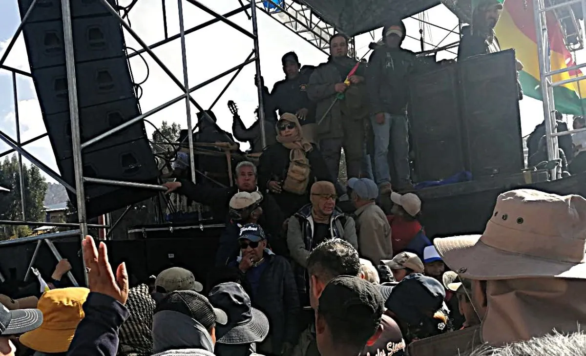 En el palco, no solo se encontraba el presidente del senado Andrónico Rodriguez, también se pudo ver a la concejal por el MAS en el municipio de La Paz, Eliana Paco. Desde la mañana, en sus redes sociales, mostró como la marcha ingresaba por El Alto y la respuesta de los habitantes.