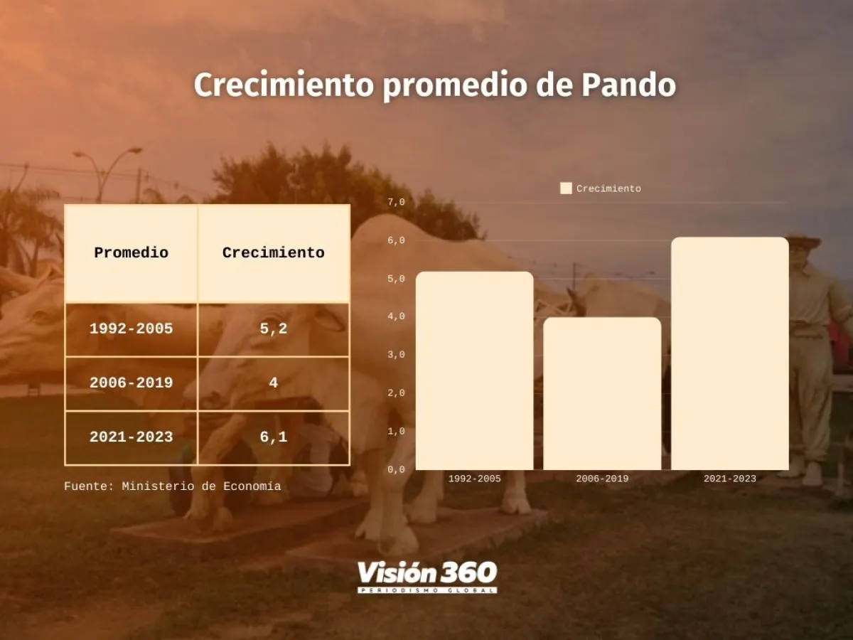 “Entre 2021 y 2023, Pando registró un crecimiento económico promedio del 6,1%, superando el crecimiento promedio nacional del 4,3% en el mismo período, lo que muestra una mayor expansión económica de este departamento en comparación con el resto del país. ”, destacó el Ministerio de Economía.