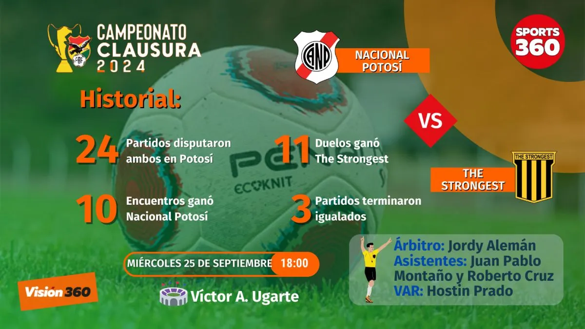 Nacional Potosí y The Strongest pondrán en escena este miércoles en el estadio Víctor Agustín Ugarte de la Villa Imperial el partido 50 entre ambos. El cotejo corresponde a la Jornada 16 del Torneo Clausura, primera de la rueda de revanchas.