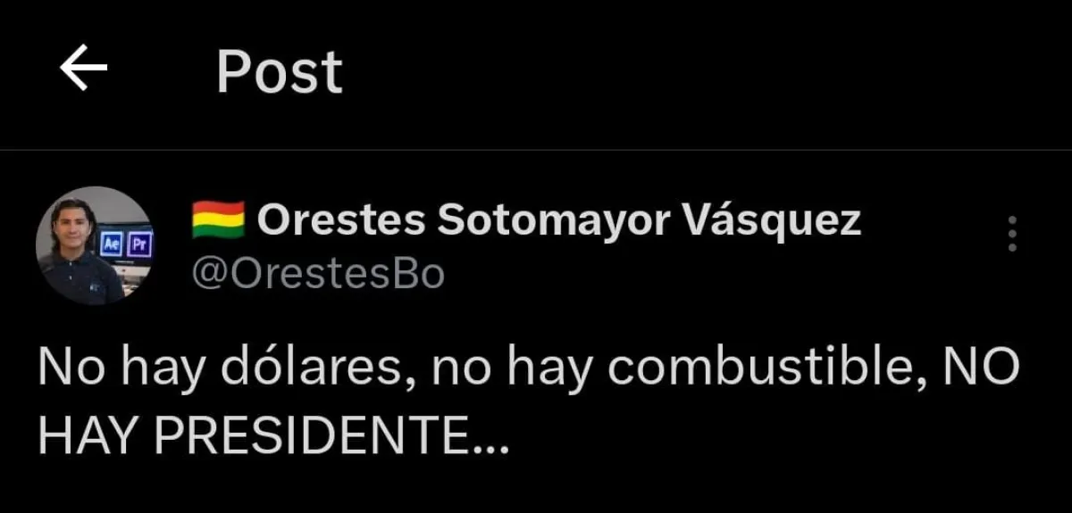 Un tiempo después, la hija de Morales publicó en su cuenta en X: “Mis compañer@s Alejandra Salinas y Orestes Sotomayor continúan detenidos. ¡Pensar diferente es sedición, decir la verdad es terrorismo! ¡Hoy son ellos mañana puedes ser tú! Toda mi fuerza y cariño para ustedes herman@s.”. El texto está acompañado por una foto de Sotomayor publicada desde la cuenta de La Resistencia Bolivia.