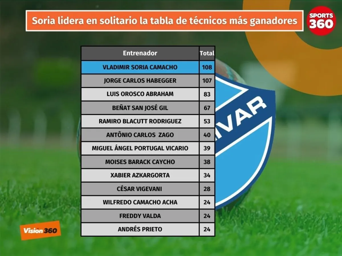 Vladimir Soria se convirtió en el entrenador más ganador en la historia de Bolívar al llegar a 108 triunfos con la victoria que tuvo la Academia este miércoles sobre Independiente (3-0) en el estadio Hernando Siles por la jornada 16 del torneo Clausura.
