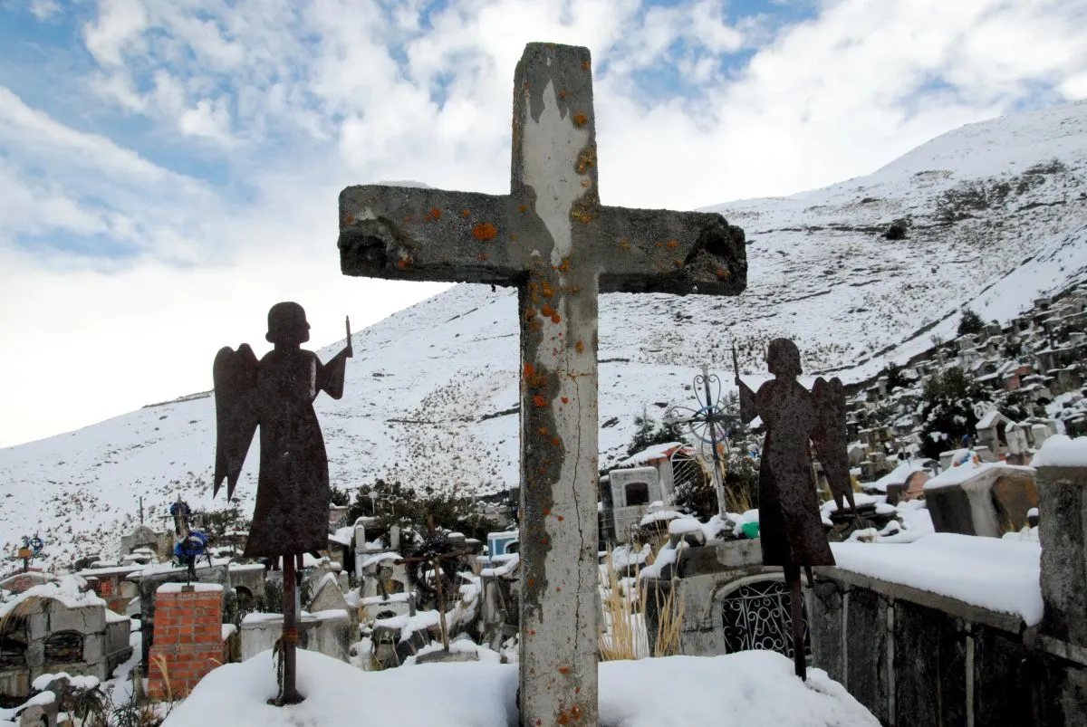 El primer tramo era un camino de tierra que ningún motorizado quería hacer porque podía enfangarse, así que comenzamos a pie. A la media hora llegamos a un cementerio que me hizo recuerdo a los 16 jugadores fallecidos en la tragedia, además del director técnico y dos dirigentes. Por supuesto que no estaban enterrados ahí, pero ese camposanto a los pies del nevado hablaba por sí solo. Continuamos por dos horas más, tiempo en el que se supone debíamos estar cerca, pero el guía dijo que faltaba mucho, sobre todo la parte de las quebradas y los pedrascos. Al cruzarnos con algunos mineros que iban de bajada nos advirtieron que continuaba nevando y la capa que se había formado era de más de un metro: ¡imposible que pasen! nos dijeron, sonriendo.