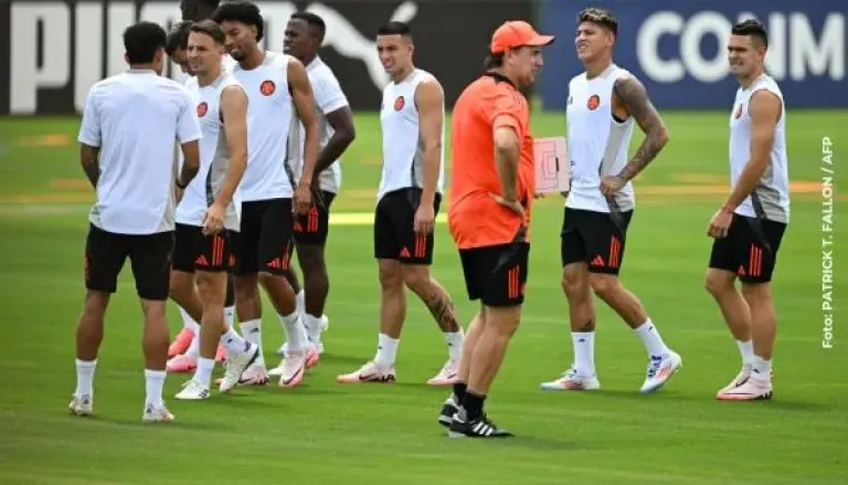 Lorenzo dirige un entrenamiento de los colombianos. Foto: RCN