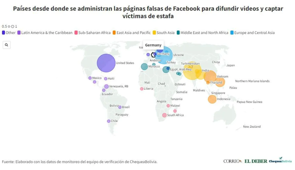 Esas páginas son administradas desde 40 países distribuidos en todo el mundo, pero principalmente de Ucrania, India y Estados Unidos. La cantidad de administradores de las páginas falsas varía de una a 24 personas, lo que da una idea de la magnitud con la que operan en el espacio digital.