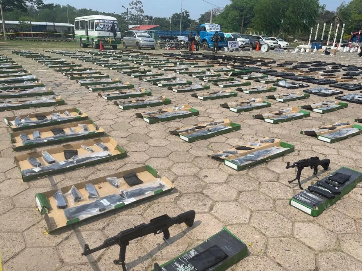 Cargamento de las armas que pretendían ser internadas de forma ilegal desde Turquía. Foto: Ministerio de Gobierno.