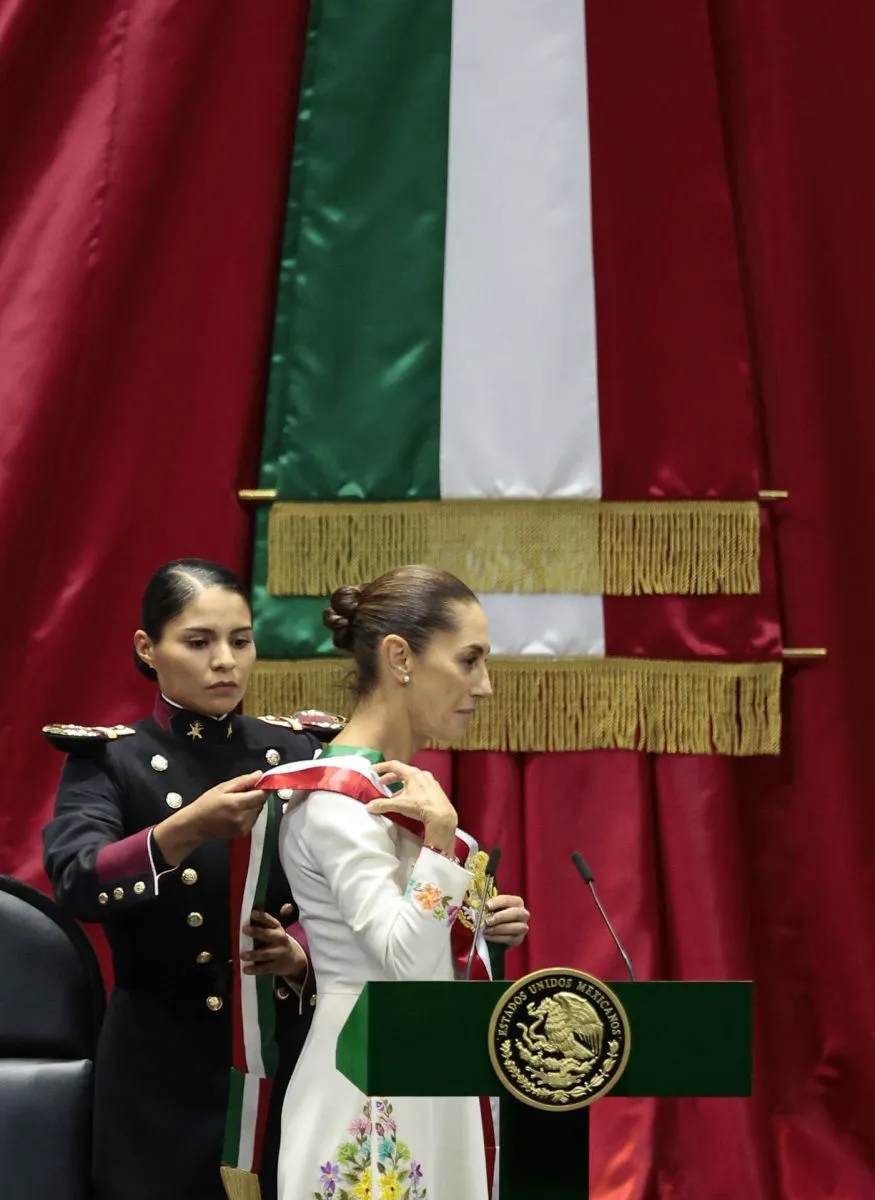 El mandatario saliente, Andrés Manuel López Obrador (2018-2024), entregó la banda presidencial a la presidenta de la Cámara de Diputados, Ifigenia Martínez, quien colocó la prenda tricolor a Sheinbaum, la primera mujer que gobernará el país tras más de sus 200 años de ser república.