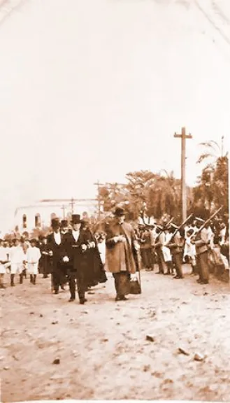 Desfile cívico, de autoridades, alumnos y policías. FOTO: Museo Municipal de Portachuelo