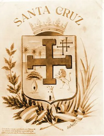 Fotografía del siglo XIX de una reproducción del escudo cruceño. FOTO: Museo Municipal de Portachuelo