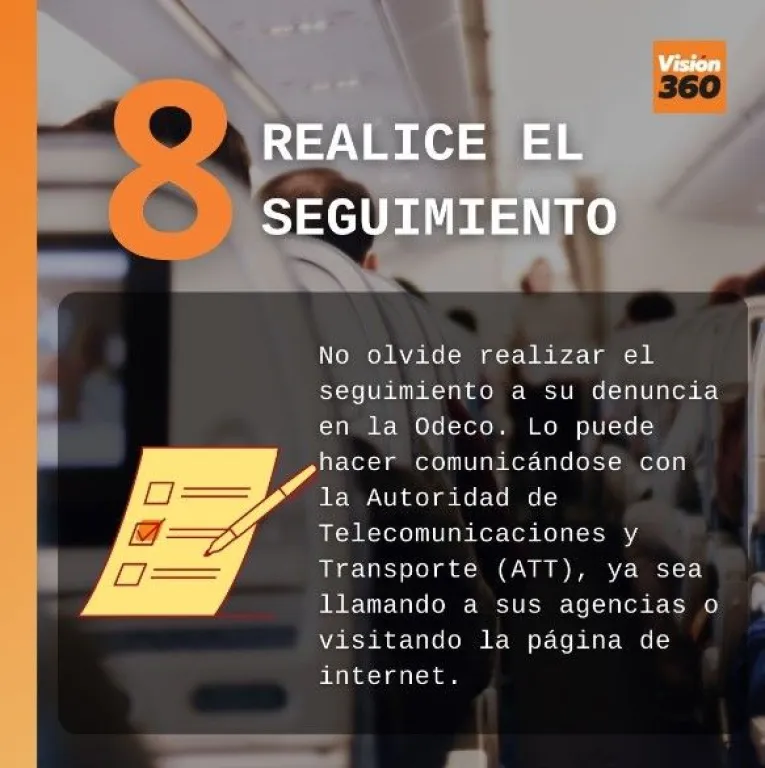 8. No olvide realizar el seguimiento a su denuncia en la Odeco. Lo puede hacer comunicándose con la Autoridad de Telecomunicaciones y Transporte (ATT), ya sea llamando a sus agencias o visitando la página de Internet.