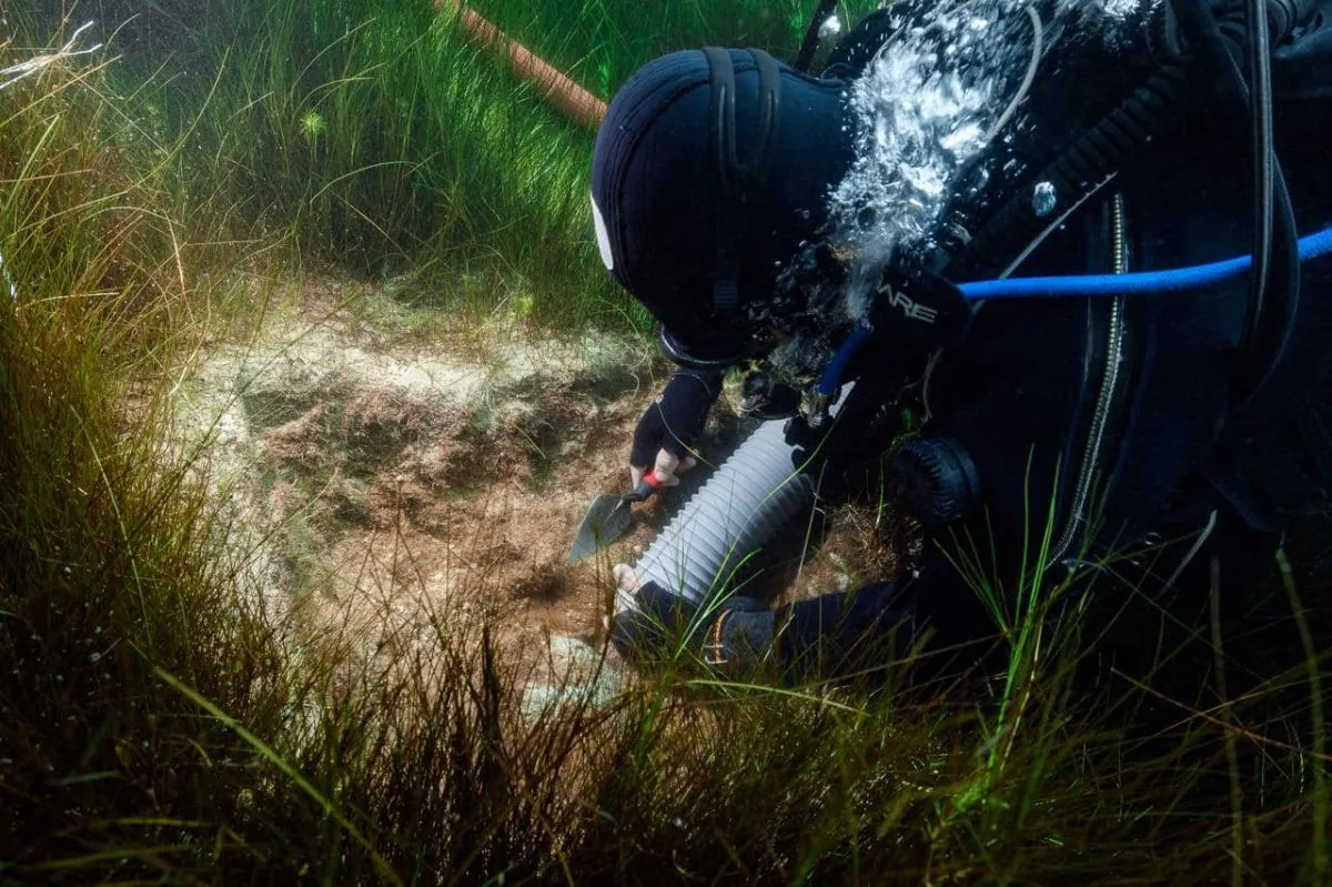 Una de las primeras arqueólogas subacuáticas de Bolivia en pleno trabajo. Foto: Gcisub