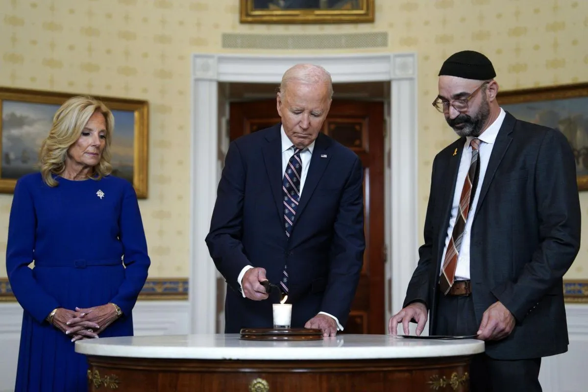 Este lunes, el presidente de EEUU, Joe Biden, y la primera dama, Jill Biden, participaron en una ceremonia junto a un rabino en la que encendieron una vela yahrzeit, utilizada en el judaísmo para honrar la memoria de los fallecidos, en conmemoración de las víctimas de los ataques perpetrados por el grupo islamista Hamás hace un año.