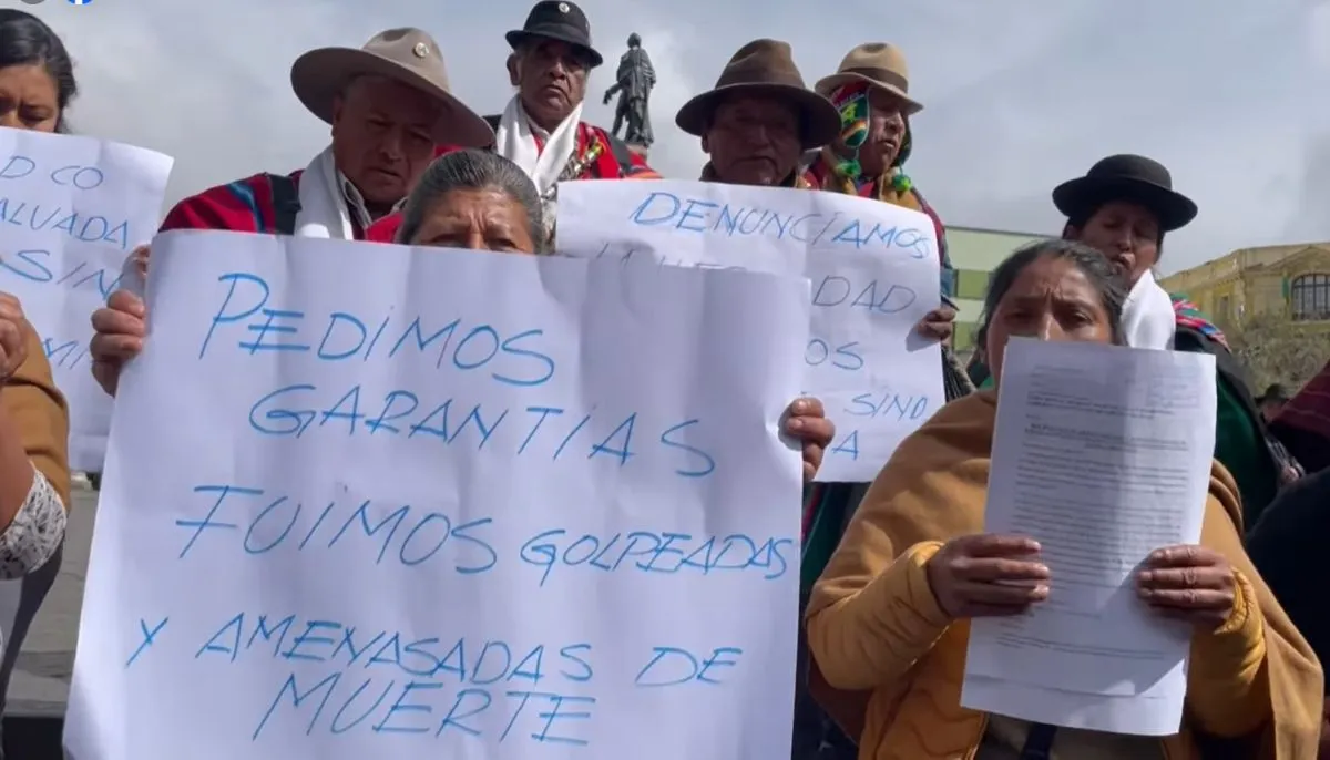 Pobladores del Ayllu Acre Antequera denunciaron en Plaza Murillo las agresiones cometidas en su contra por los mineros. Foto: Ayllu Acre Antequera.
