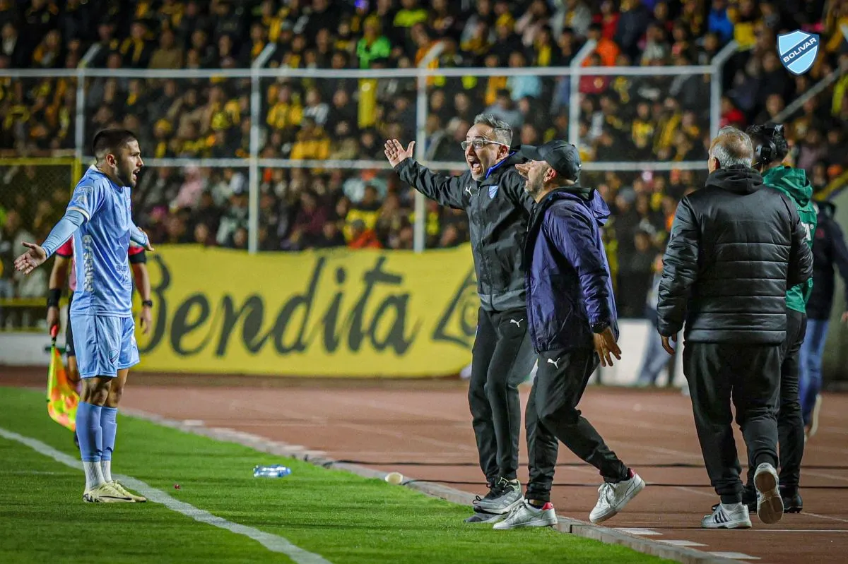 El estratega argentino durante el clásico paceño en el Hernando Siles. Foto: Club Bolívar.