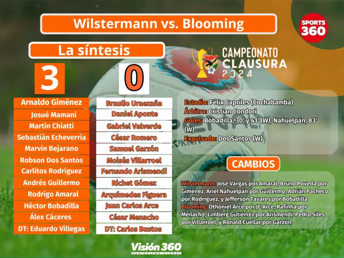 Wilstermann obtuvo un claro triunfo sobre Blooming 3-0 este sábado en el estadio Félix Capriles de Cochabamba, por la jornada 18 del Torneo Clausura.