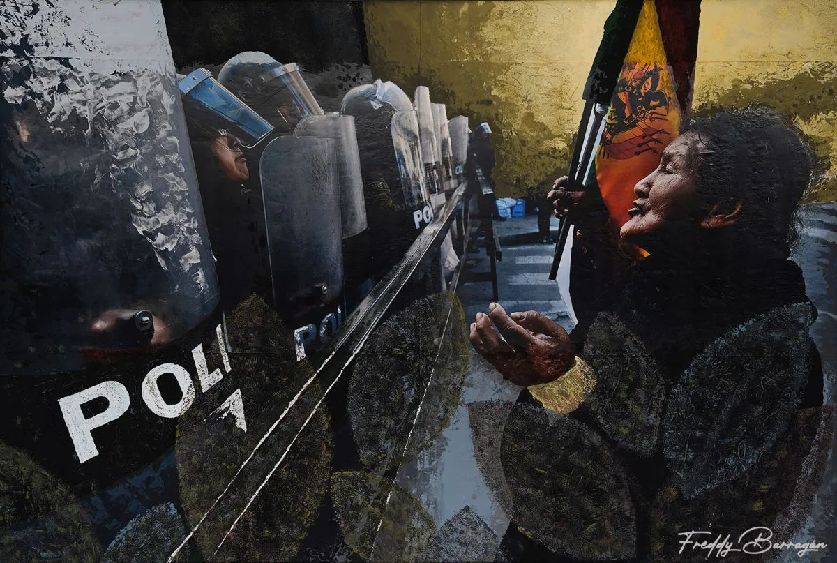 En septiembre de 2021 dos facciones de cocaleros de Los Yungas se enfrentaron por el control del Mercado de la Coca de Villa Fátima. Freddy Barragán fue uno de los fotoperiodistas que capturaron los enfrentamientos y otros aspectos de la vida de ese sector. Hizo después de una selección de las imágenes y las intervino con técnicas pictóricas creando la serie Cromática Cocalera, una mirada artística sobre la resistencia cocalera, que se inaugurará este miércoles.