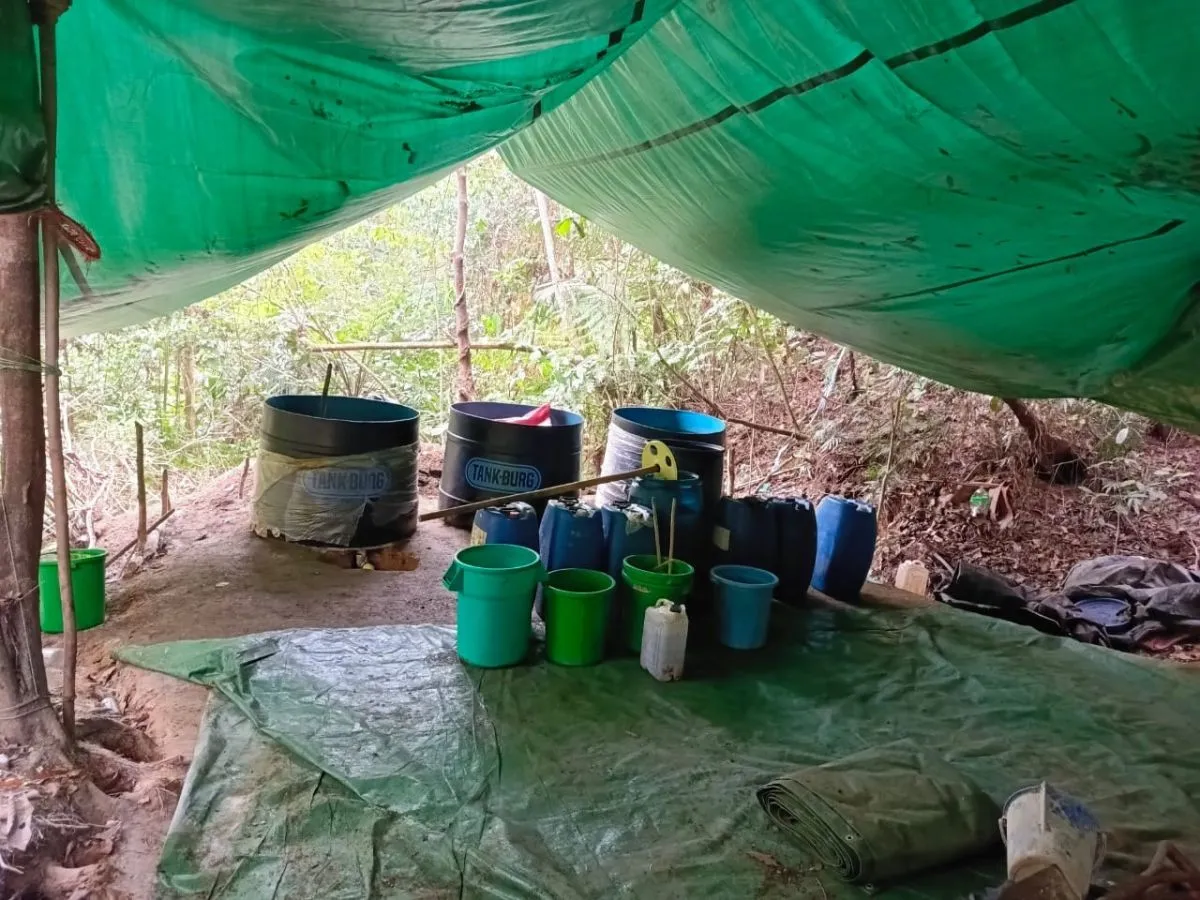 Imagen que posteó el ministro de una de las fábricas de droga en el Chapare. Foto: @EDelCastilloDC