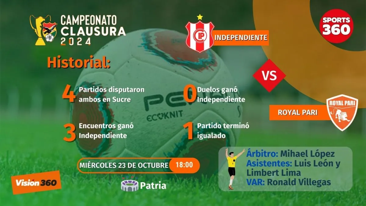 A no dejar escapar más puntos. Esa es la premisa en Independiente para su regreso a la acción, cuando este miércoles reciba a Royal Pari en el estadio Patria (18:00), por la fecha 19 del Torneo Clausura de la División Profesional.