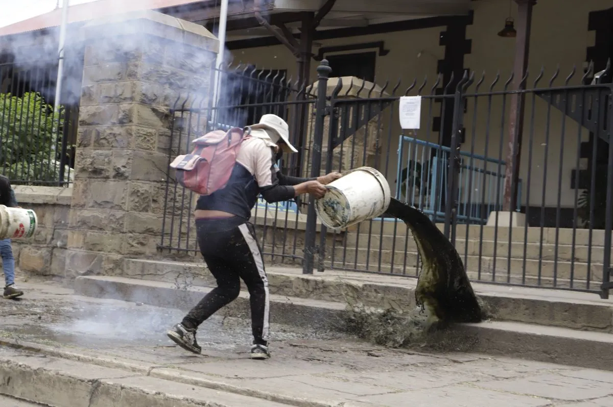 Mientras tanto, productores de leche de Cochabamba lanzaron excremento de vaca en las puertas de la Gobernación, exigiendo al gobernador, Humberto Sánchez -afín a Morales- que ordene despejar las carreteras, ya que no pueden transportar su producto.