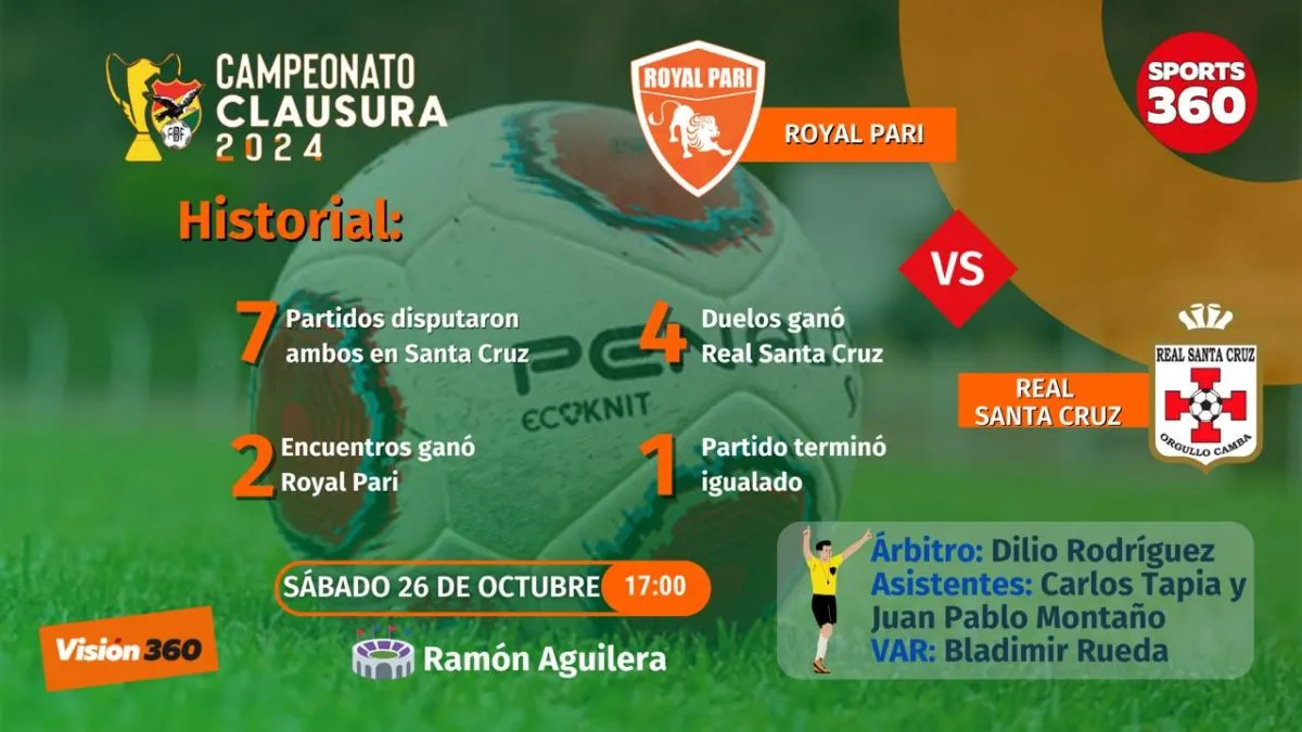 Para Royal Pari y Real Santa Cruz el partido de este sábado (17.30) en el estadio Tahuichi Aguilera de Santa Cruz es una final adelantada en procura de evitar la zona roja del descenso de categoría.