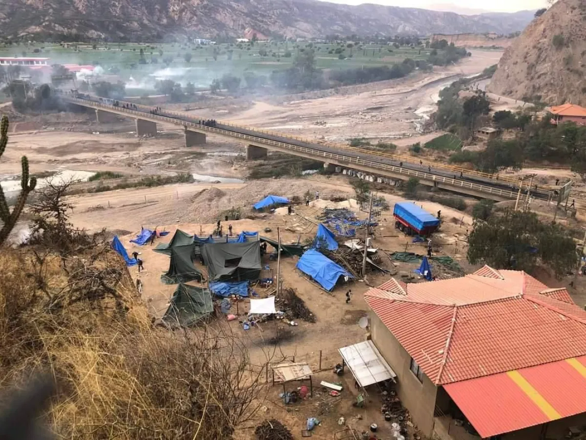 Campamento de los bloqueadores "evistas" en el puente de Parotani. Foto: RKC