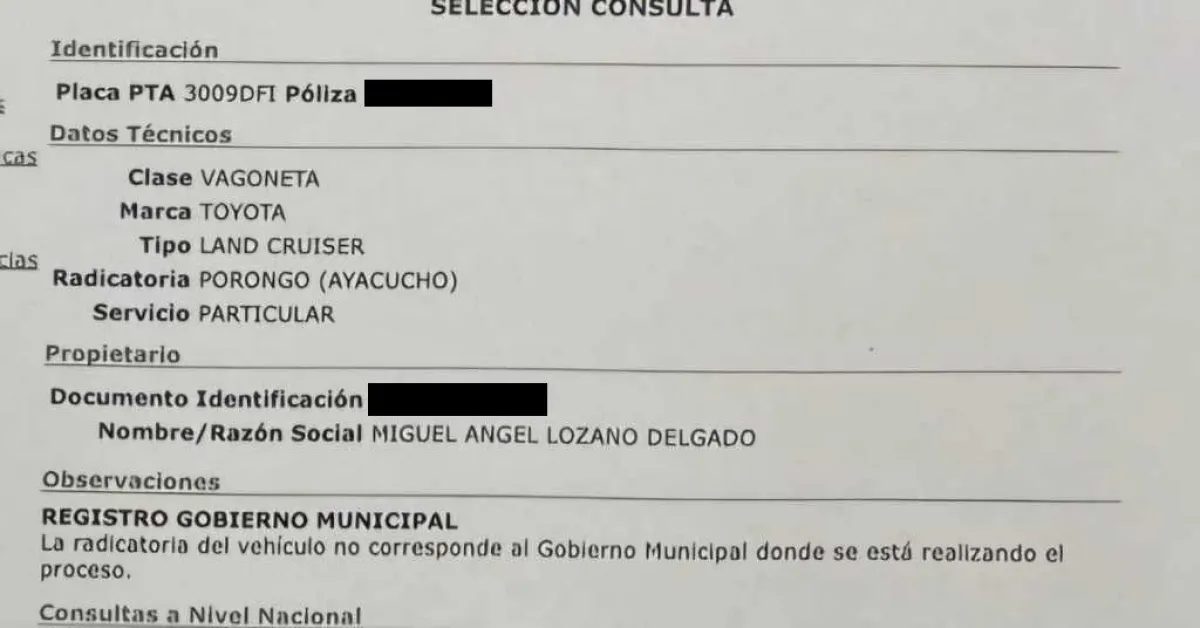 “El propietario registrado en el RUAT es del señor Miguel Ángel Lozano Delgado, es el presidente de PDVSA en Bolivia, y él figura como propietario de este vehículo y no es sólo eso, si nos trasladamos a la marcha de Evo Morales, hubo una vagoneta. blanca en la que también circuló Evo Morales, y que había sido transferida a una menor de edad que estaba vinculada a hechos de narcotráfico; pues resulta que el vendedor de esa vagoneta o quien la transfiere es el mismo señor”, dijo Guiteras a Visión 360.