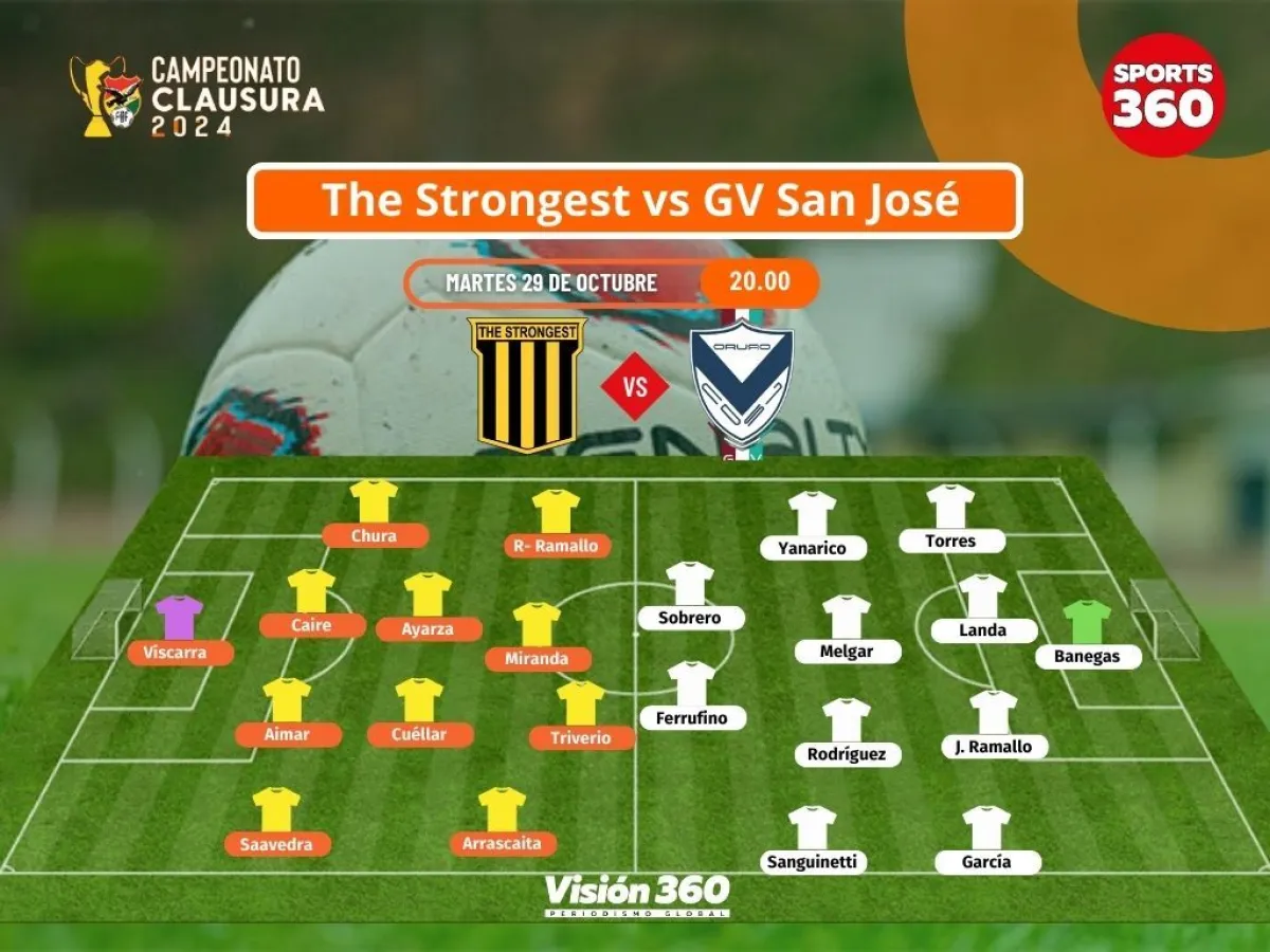 The Strongest y GV San José, el segundo y el tercero de la tabla del Clausura, respectivamente, llegan al partido de este martes con el mismo objetivo: reducir la ventaja con el líder Bolívar (41 unidades).