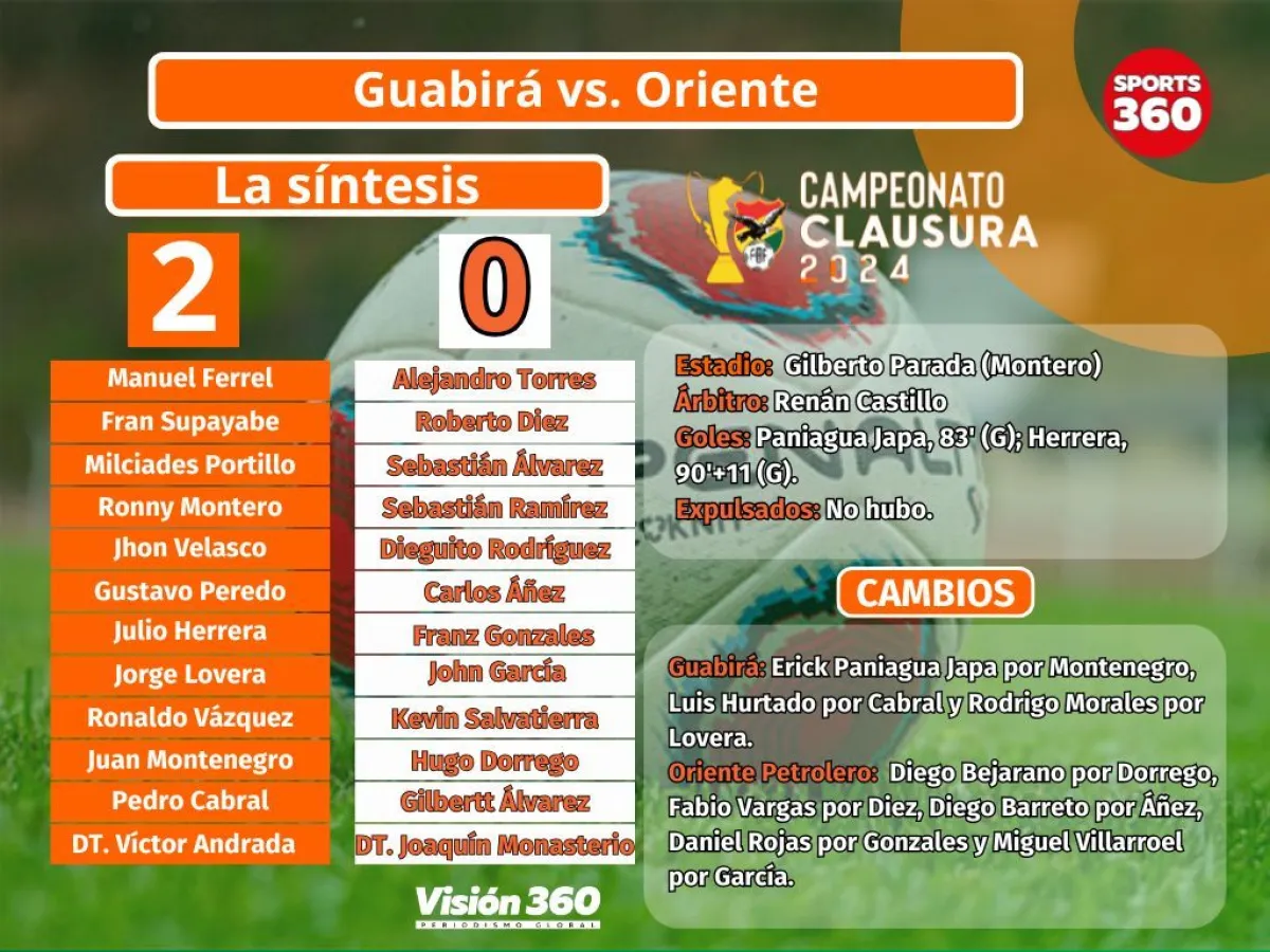 Guabirá le ganó a Oriente Petrolero por 2 a 0, lo que le permitió alejarse del último lugar de la tabla de posiciones del torneo Clausura y también de la zona roja en la tabla anual de la temporada.
