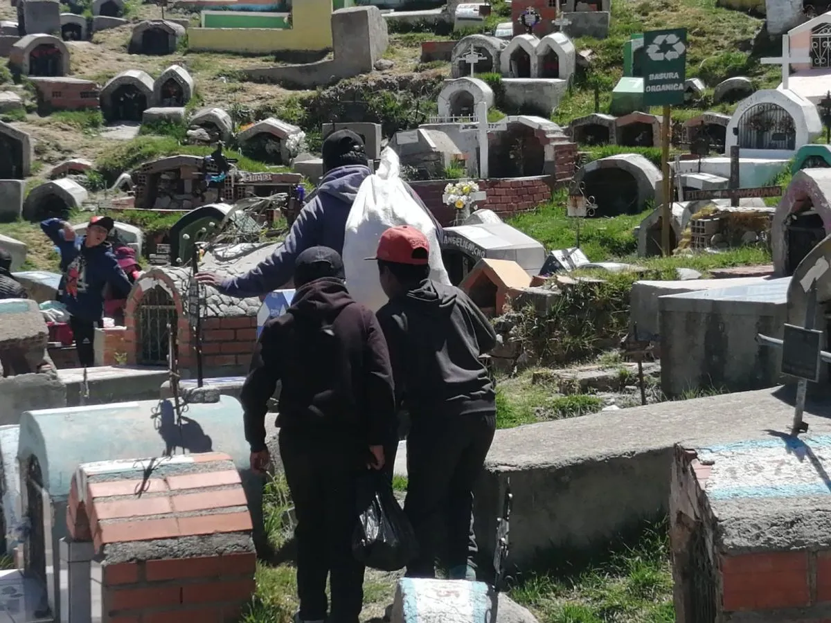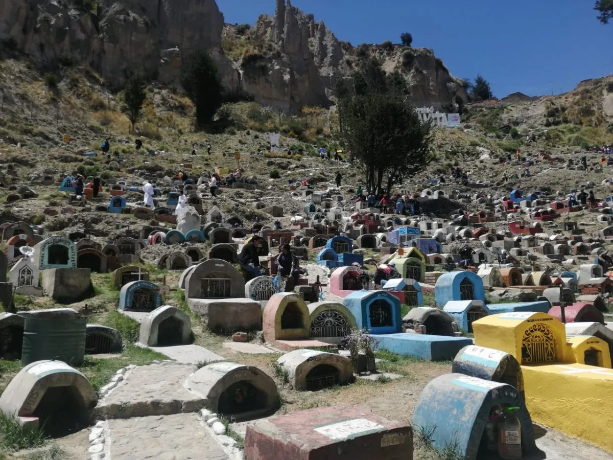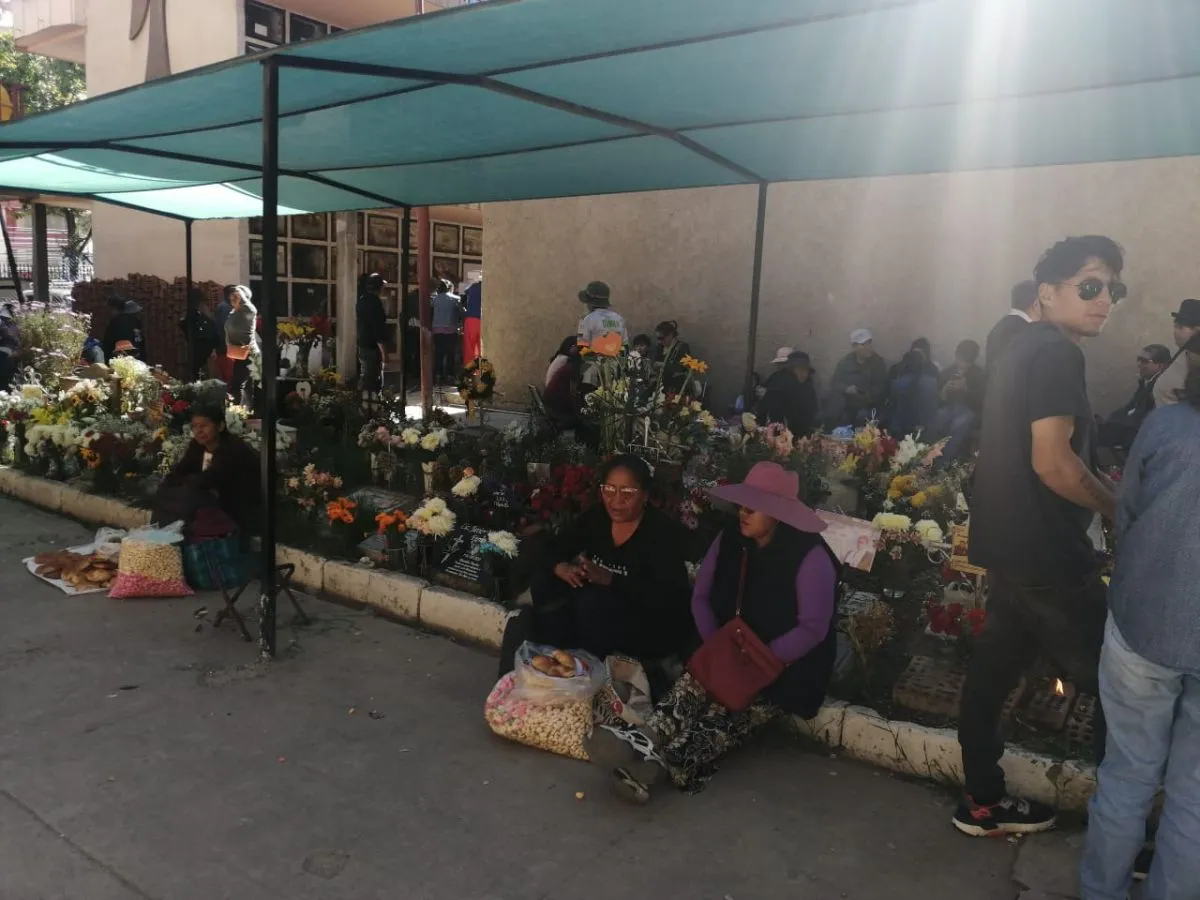 Cerca al medio día, el cementerio La Llamita fue el primero en recibir a las familias paceñas. Debido a la restricción en la cantidad de alimentos e insumos, enormes altares se empezaron a armar en todo el exterior del camposanto, que -hace poco- pasó a ser administrado por la Alcaldía de La Paz.