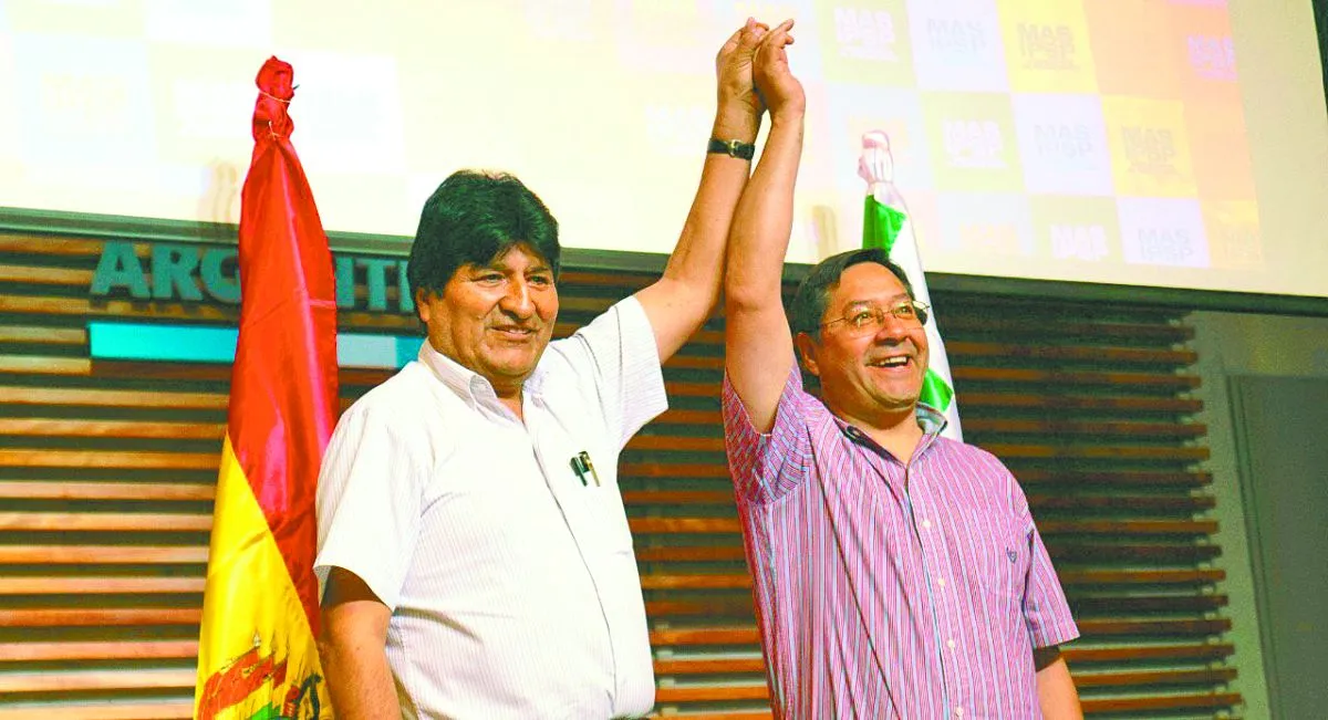 Morales, cuando presentó a Arce como candidato del MAS, en Argentina, el 27 de enero de 2020. Foto: Cuenta de x de Morales