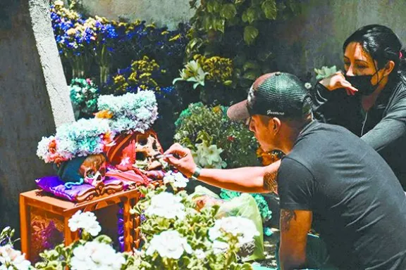 Las ñatitas son festejadas en el Cementerio General el 8 de noviembre. Se las engalana con flores y se les entrega ofrendas. FOTO: AMUN