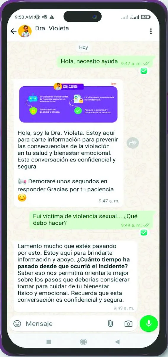 Dra. Violeta, primer chat con IA para asistir a víctimas de violencia sexual