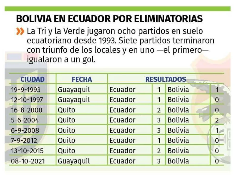 A partir de ese año, Bolivia visitó otras siete veces tierras ecuatorianas y perdió en todas.