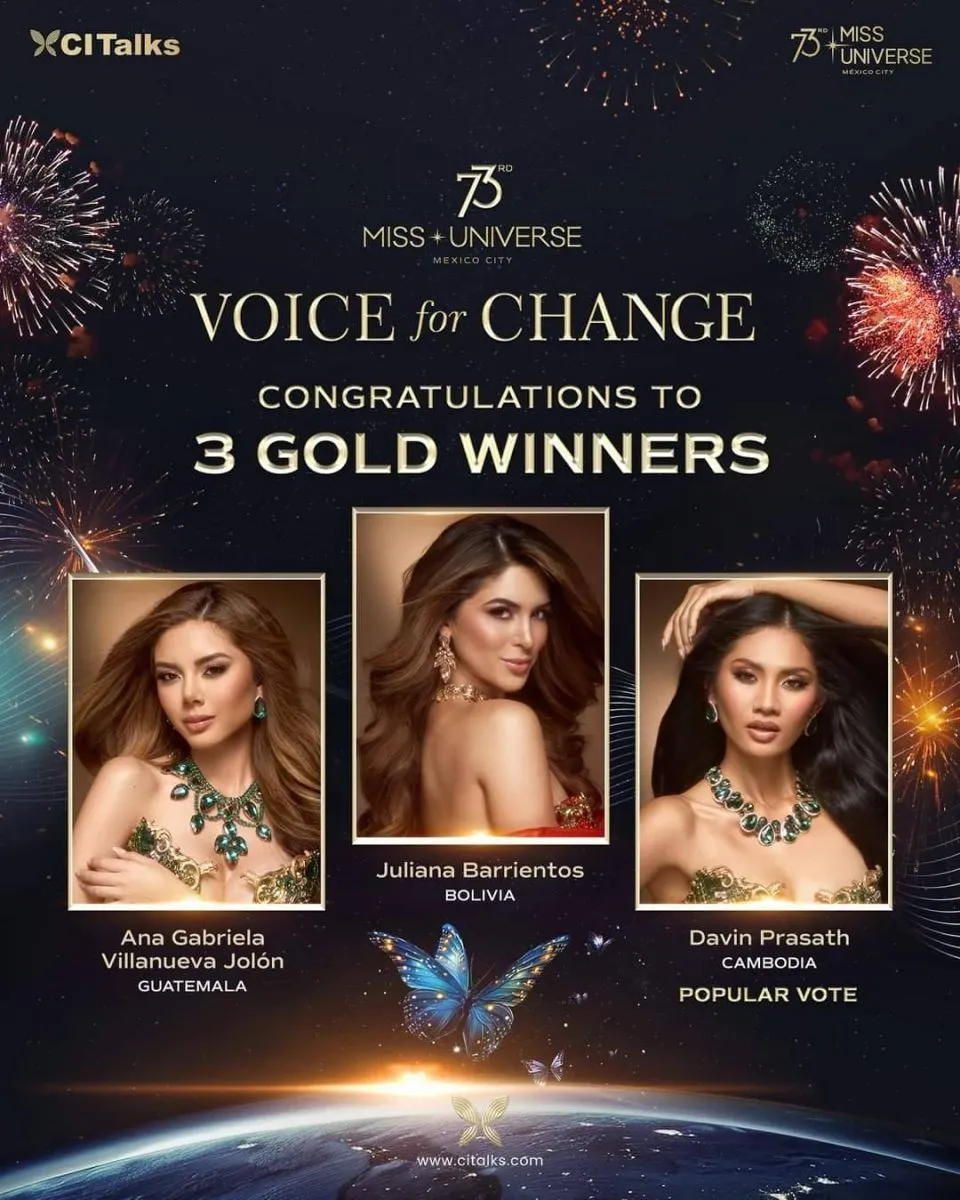 Juliana Barrientos, Miss Bolivia, que representa al país en el Miss Universo 2024, ganó el premio “Voice for Change” (Voz de Cambio) por su proyecto social "El esmalte de uñas que salva vidas", el cual detecta la presencia de drogas en bebidas. El premio es de 12 mil dólares, que incentivarán nuevos emprendimientos.