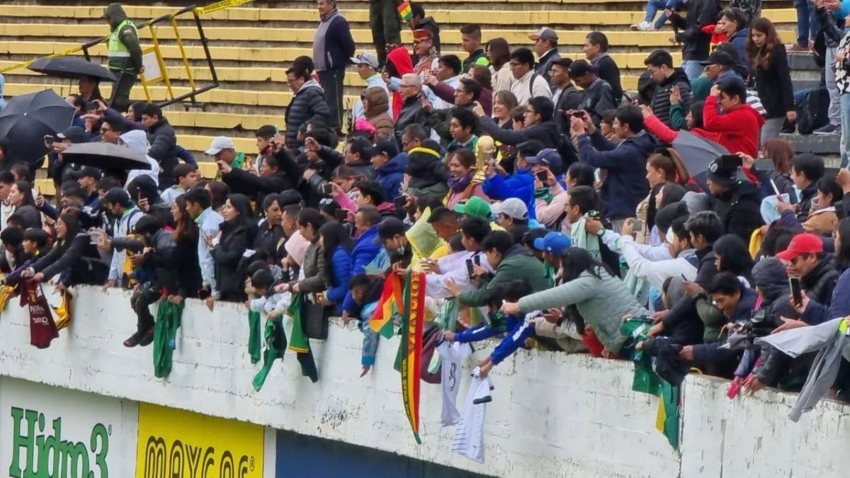 Un centenar de aficionados acudieron este lunes al entrenamiento abierto que tuvo el equipo nacional de cara al partido del martes contra Paraguay en El Alto.