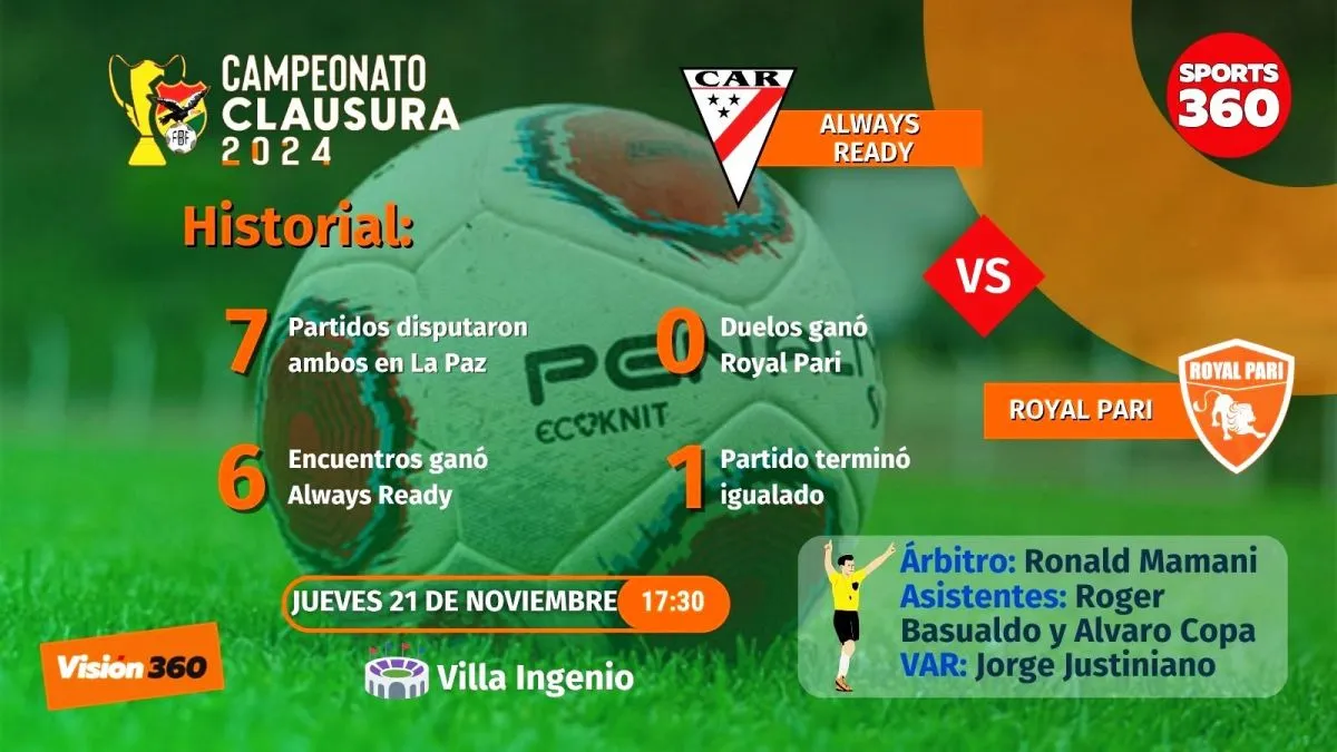 Un partido de dos necesitados se disputará está tarde entre Always Ready y Royal Pari (17.30) en el estadio Municipal de Villa Ingenio por la fecha 22 del torneo Clausura de la División Profesional.