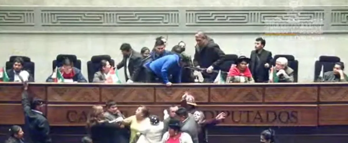 En un intento de tomar la testera, asambleístas del ala "evista" irrumpieron en la sesión de la Cámara de Diputados de la Asamblea Legislativa Plurinacional (ALP) en medio de gritos y agresiones. Pese al escándalo que protagonizaron los legisladores afines al expresidente Evo Morales, el encuentro no fue suspendido y cumplió su objetivo: la aprobación de la resolución camaral para la conformación de comisiones y comités de la legislatura 2024-2025.