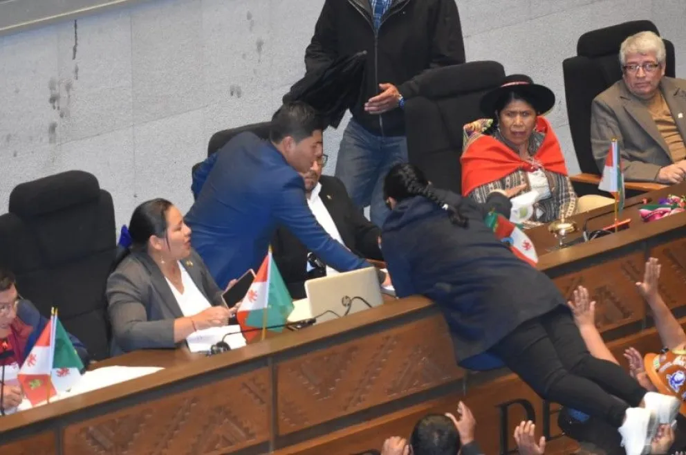 Al final, se enfrentaron con gritos, insultos y empujones, y en este caso consiguieron que se suspenda la sesión, al igual que el informe verbal que debió ofrecer el presidente Luis Arce Catacora, mientras los invitados internacionales, entre ellos varios embajadores, observaban el bochornoso momento y luego se retiraran del lugar.