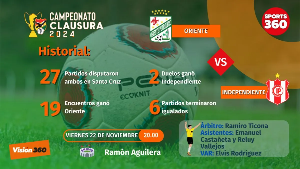 Apenas 48 horas después de sus anteriores partidos, Oriente Petrolero e Independiente volverán a la cancha este viernes (20.00) en el estadio Tahuichi Aguilera, en cotejo reprogramado de la jornada 18 del Torneo Clausura.