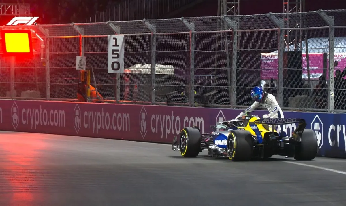 Colapinto, que terminó décimo cuarto, tocó la parte izquierda del muro al inicio de la curva dieciséis, en un lugar muy estrecho del circuito, lo que escupió al coche hacia el otro costado, estrellándose al inicio de la larga recta de atrás del circuito de la meca del juego.
