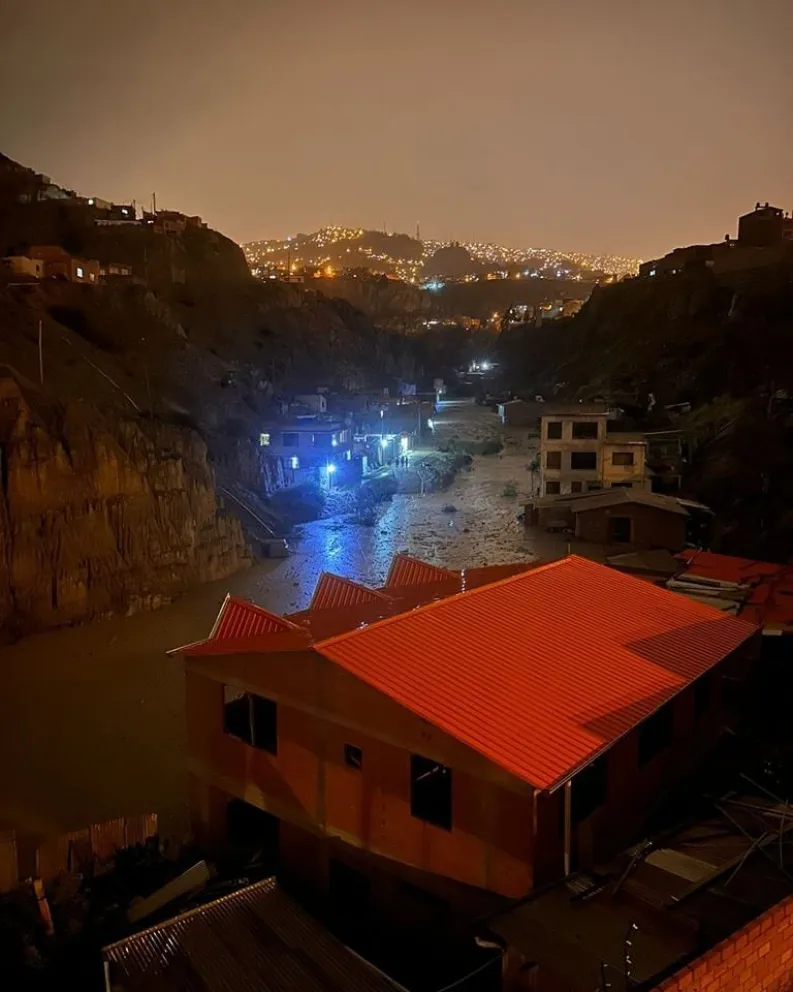 Luego de la torrencial lluvia que cayó esta noche en la ciudad de La Paz, los vecinos de la zona Santa Cecilia, en Bajo Llojeta, reportaron el desborde del río. Por medio de sus redes sociales alertaron de que se escucharon gritos de niños, que ahora se reportan como desaparecidos y atrapados por el lodo que anegó domicilios particulares.