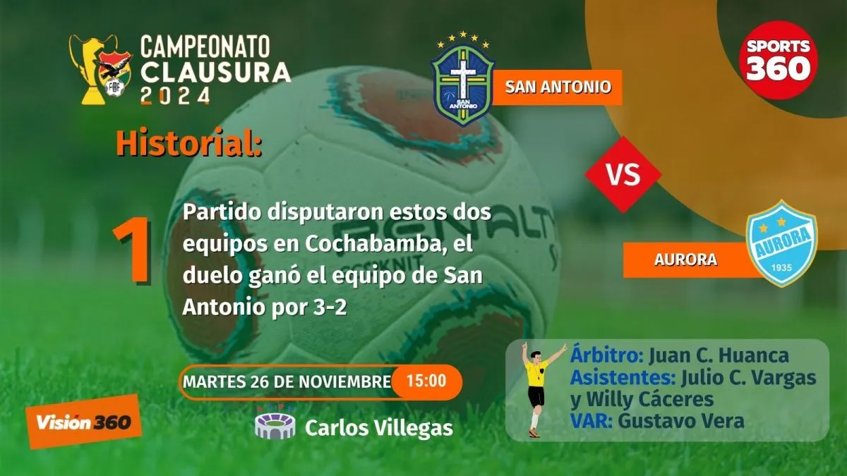 Con el objetivo de seguir por el buen camino para acercarse más a The Strongest en la Tabla Acumulada y meterse en zona de clasificación a la Copa Libertadores de América 2025, Aurora visitará este martes (15.00) a San Antonio Bulo Bulo por el inicio de la jornada 23 del torneo Clausura en el estadio Carlos Villegas de Entre Ríos.