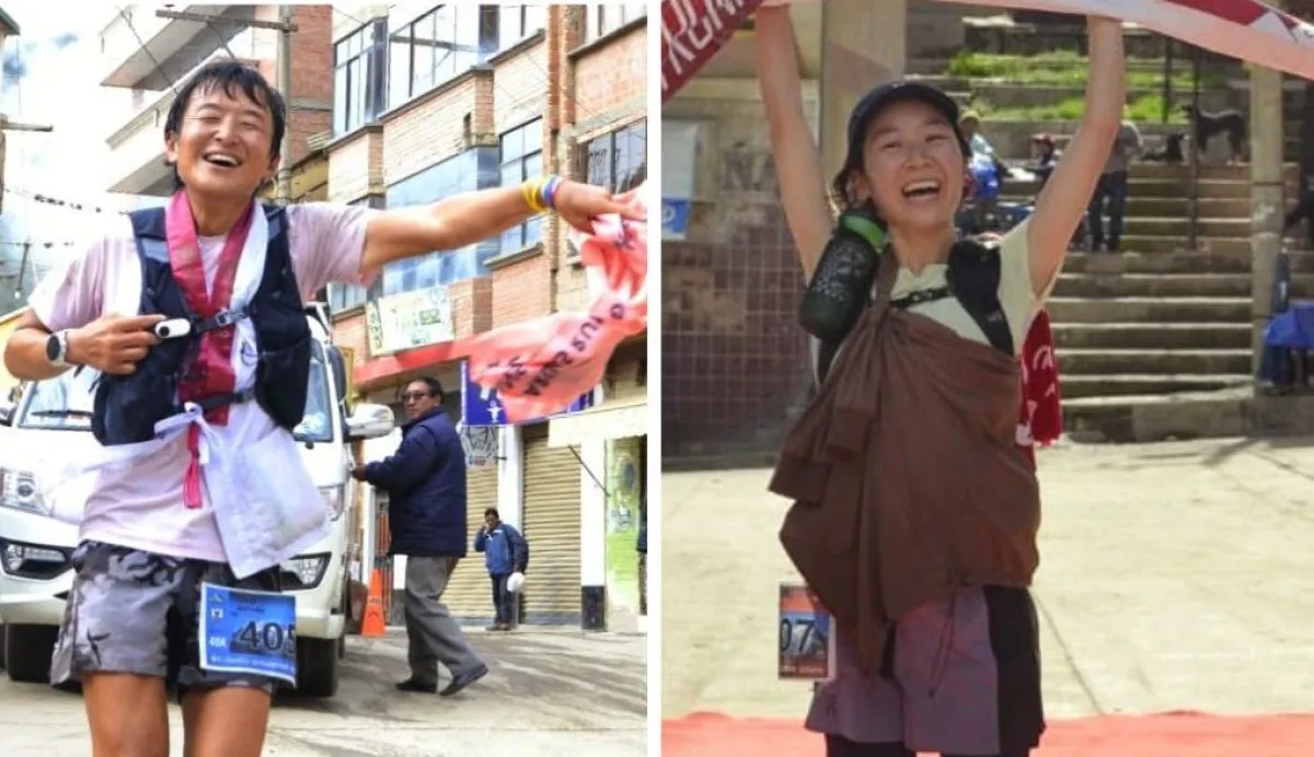 Los japoneses Inu (izq.) y Koizumi llegan a la meta. Foto: Skyrunning Bolivia.