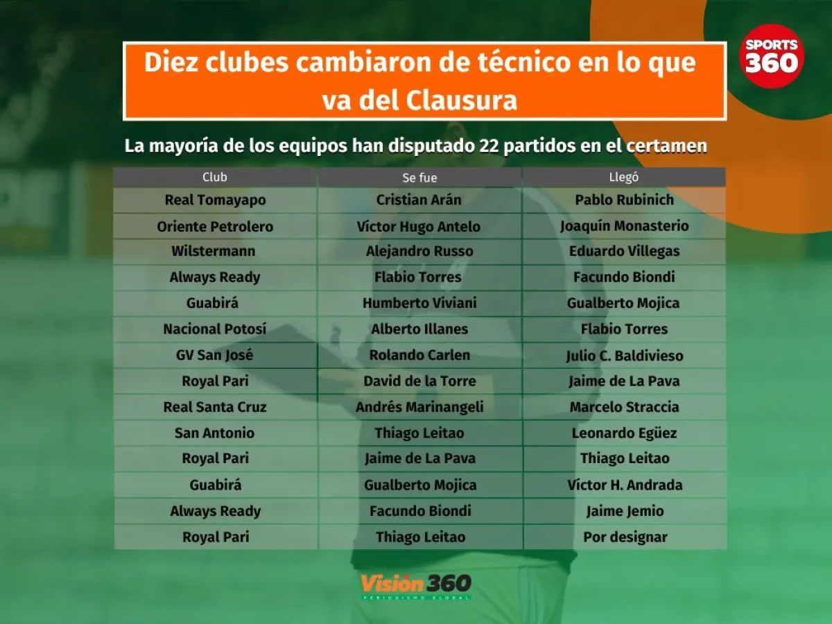 Con esta nueva salida, ya son 14 los técnicos que fueron destituidos, de los cuales tres fueron de Royal Pari.