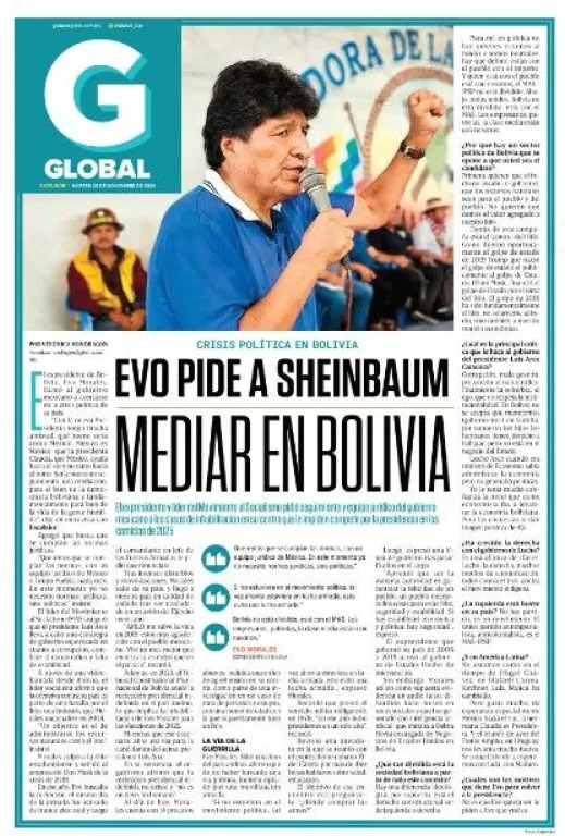 “Con la nueva Presidenta tengo mucha amistad, qué bueno sería como México, México es México, que la presidenta Claudia, que México, ayuda hacia el sur y no tanto hacia el norte. Sería bueno un seguimiento, una mediación, para el bien de la democracia boliviana y fundamentalmente para bien de la vida de la gente humilde”, dijo Morales en entrevista con Excélsior.