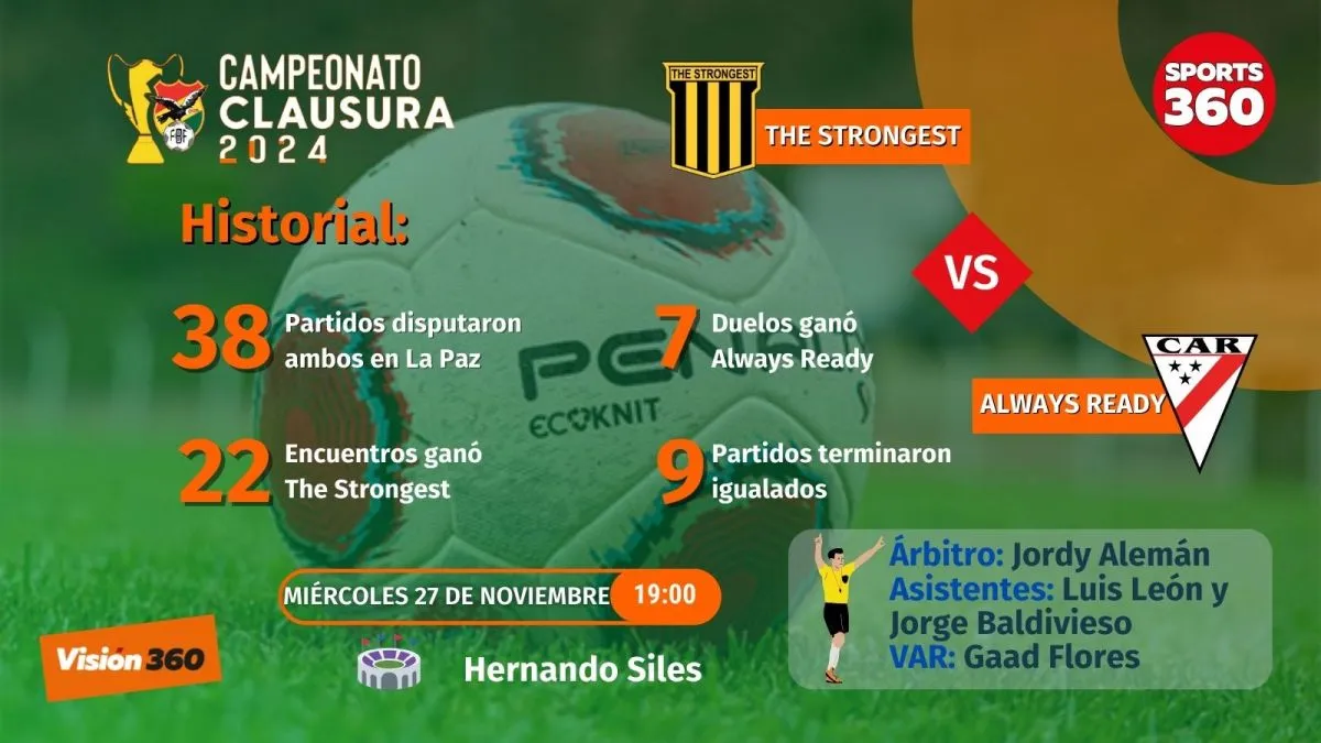 The Strongest y Always Ready protagonizarán en la noche de este miércoles el partido estelar de la jornada 23 del torneo Clausura, los dos están obligados a ganar, aunque por su ubicación en la tabla del Clausura y en la Acumulada sus objetivos son diferentes. El cotejo se jugará desde las 19.00 en el estadio Hernando Siles.