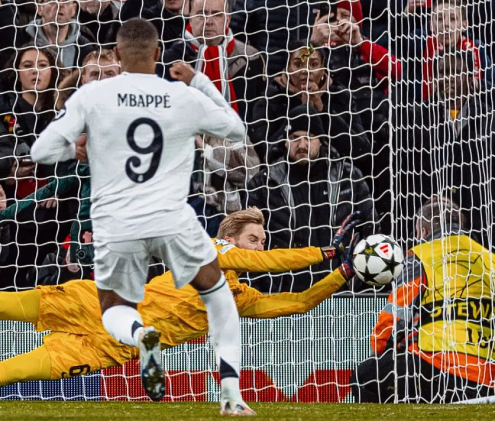 Dentro de un partido en el que Liverpool venía siendo superior y había conseguido la ventaja, Real Madrid tuvo la gran chance desde los doce pasos. Un penal de Robertson sobre Lucas Vázquez tan sólo cinco minutos después del tanto de Mac Allister le entregó la ocasión de igualar a Mbappé. Sin embargo, el remate a media altura y no tan fuerte del crack francés fue atajado con suficiencia por Kelleher, que sostuvo el 1-0 a favor de los Reds.