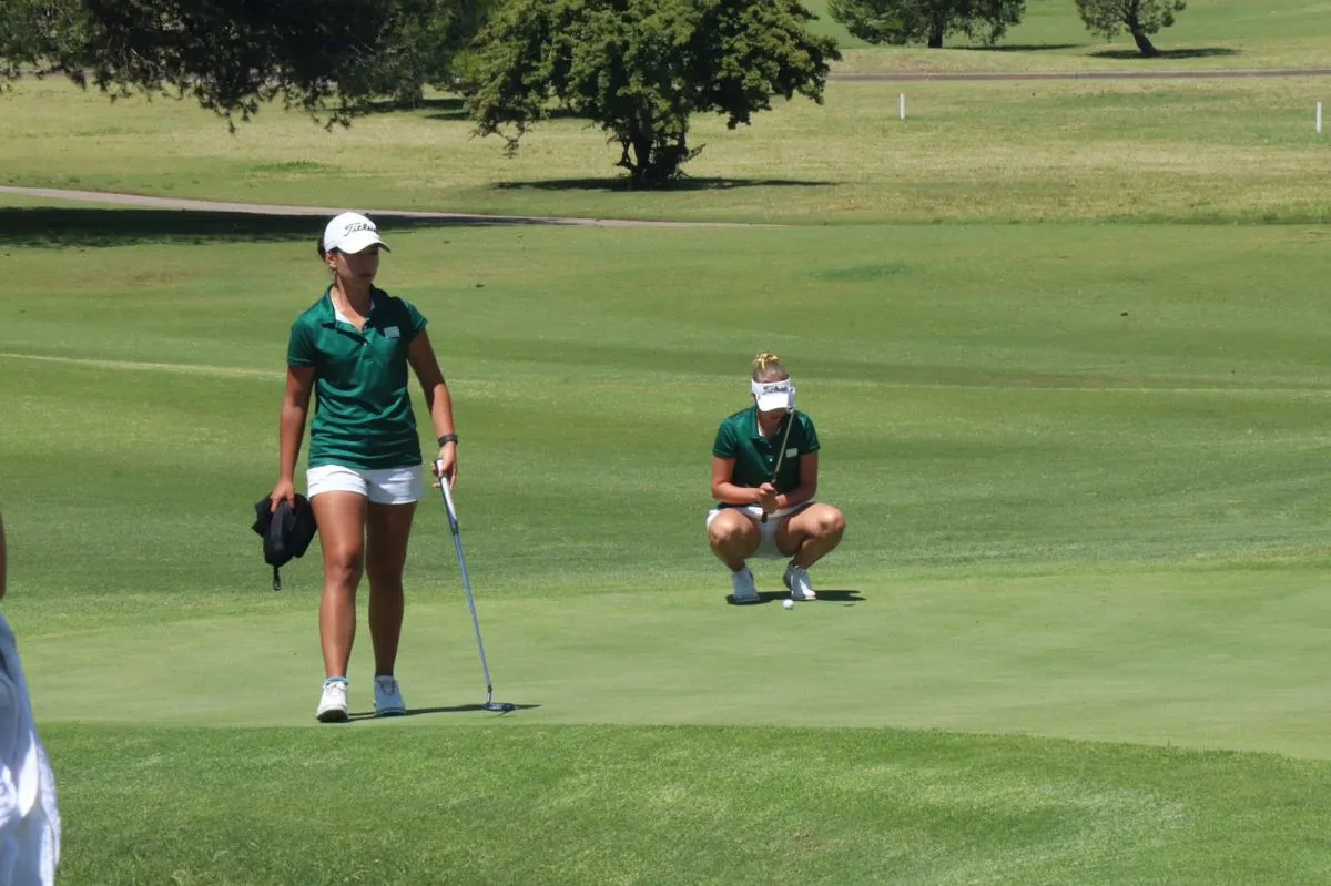 Dos miembros del equipo femenino en plena competencia. Foto: Federación Boliviana de Golf.