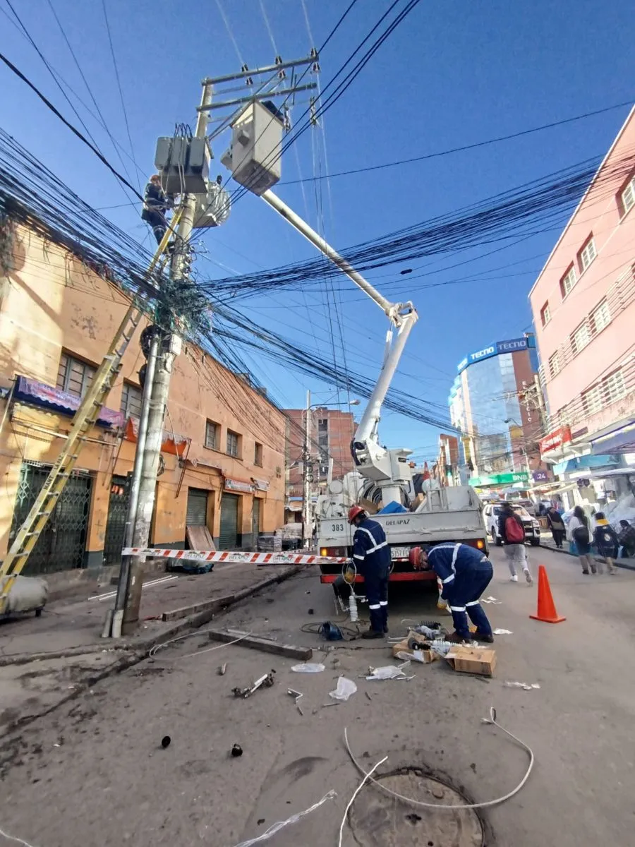 Detalla que las acciones fueron coordinadas con el Gobierno Autónomo Municipal de La Paz y las empresas de comunicaciones, “quienes realizaron el traslado y retiro de los cables en desuso, de esta manera evitar accidentes y reducir la contaminación visual en el barrio tan concurrido por los paceños”.