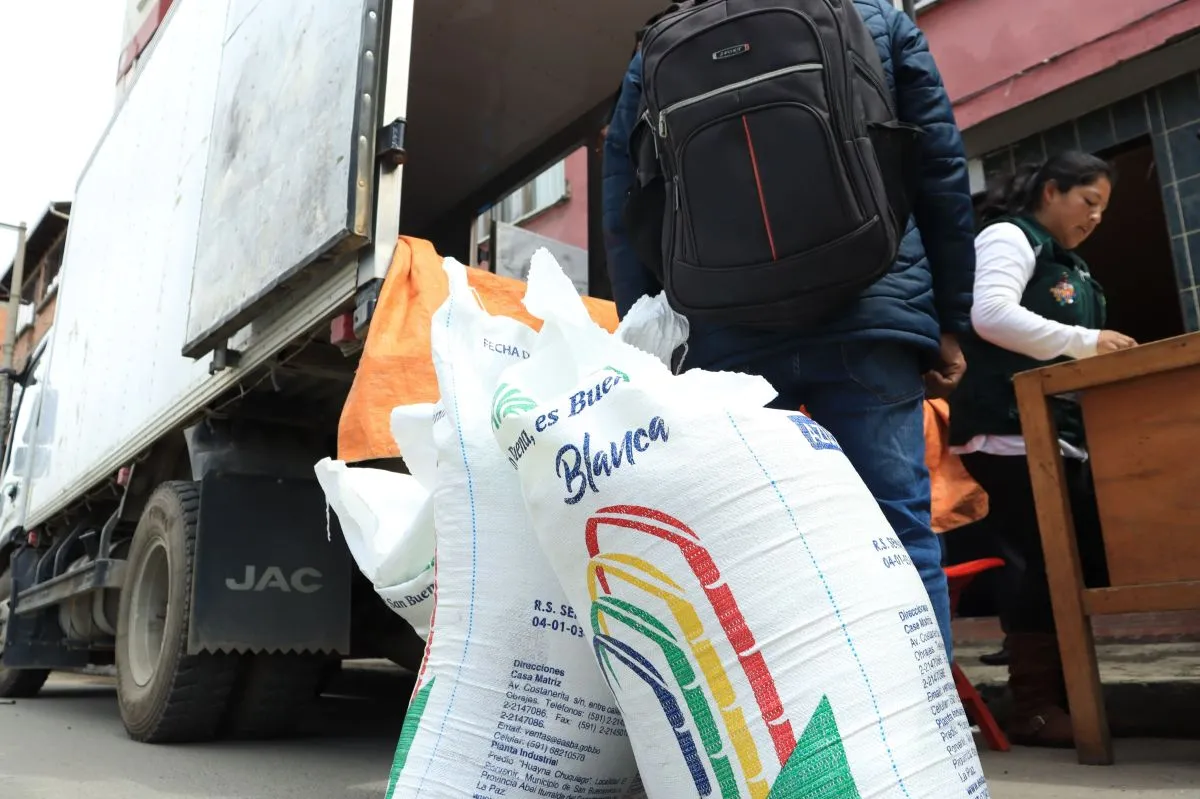 Ante la escasez y la especulación de los revendedores, Emapa comenzó a vender arroz en sus supermercados, y luego también lo hizo con arroz en diferentes barrios de La Paz y El Alto.